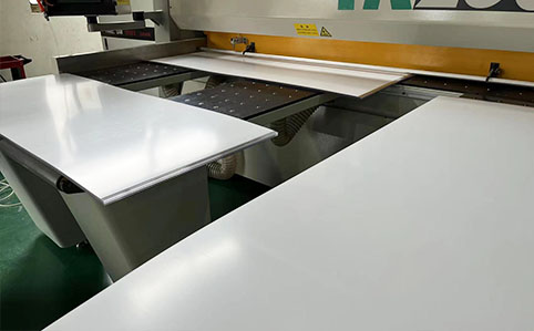 02裁切 跟進客戶所要的尺寸,在裁切機上調試好長寬高來進行裁切,分切效率高,公差在±0.15mm